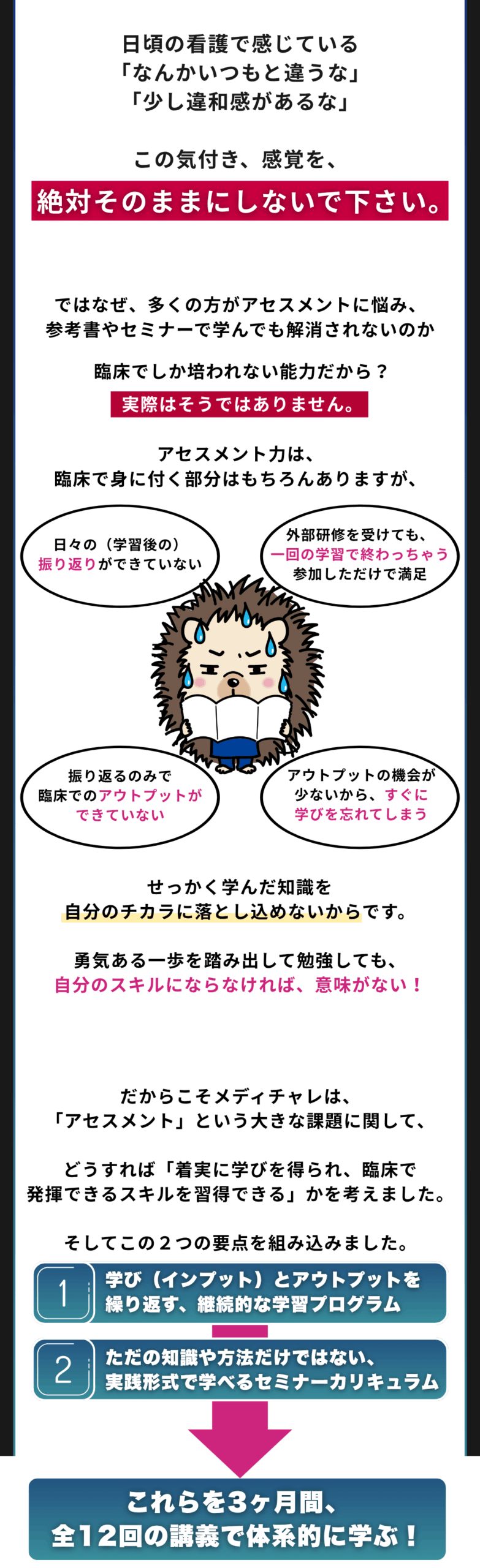 また、今までのコースセミナーでも、看護師以外に学生や他職種の医療職者など多数参加いただいておりますので、お気軽にご参加ください。