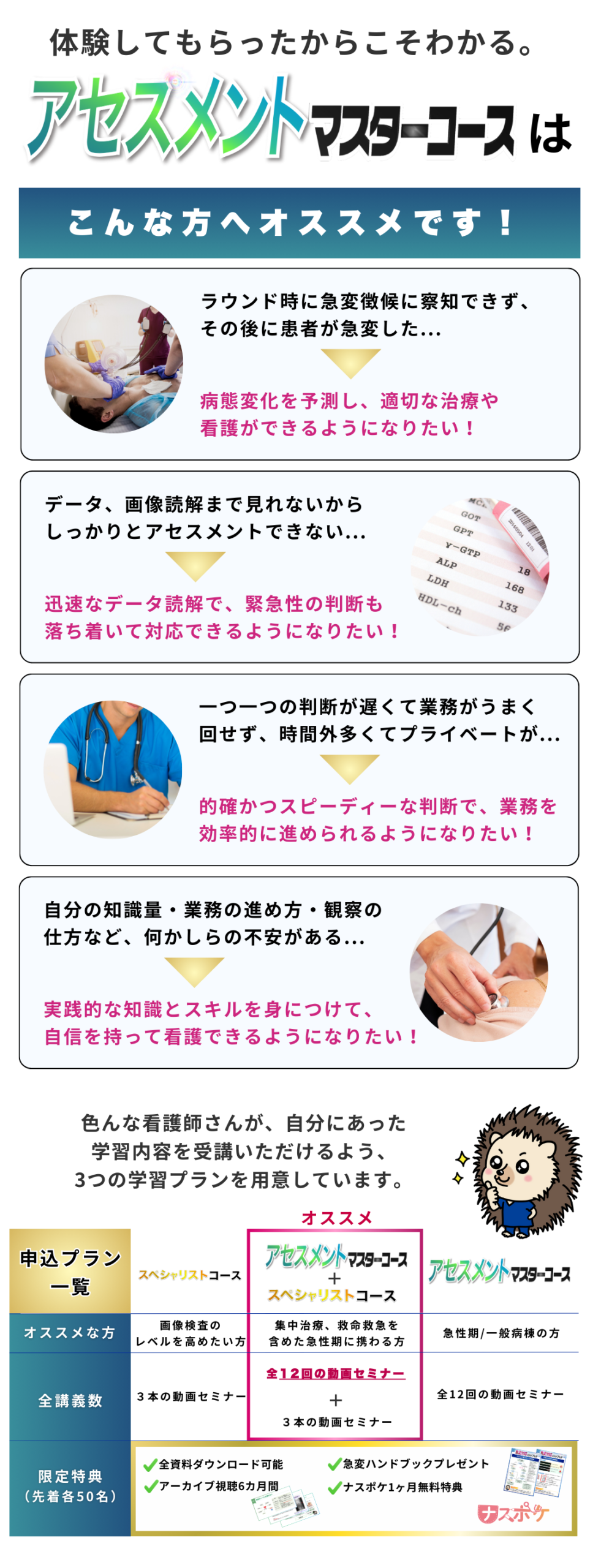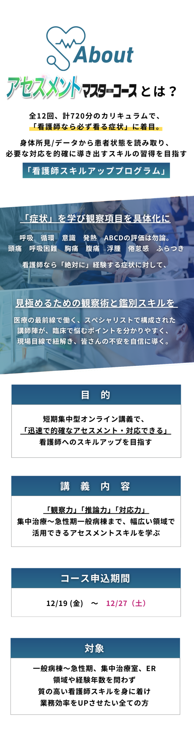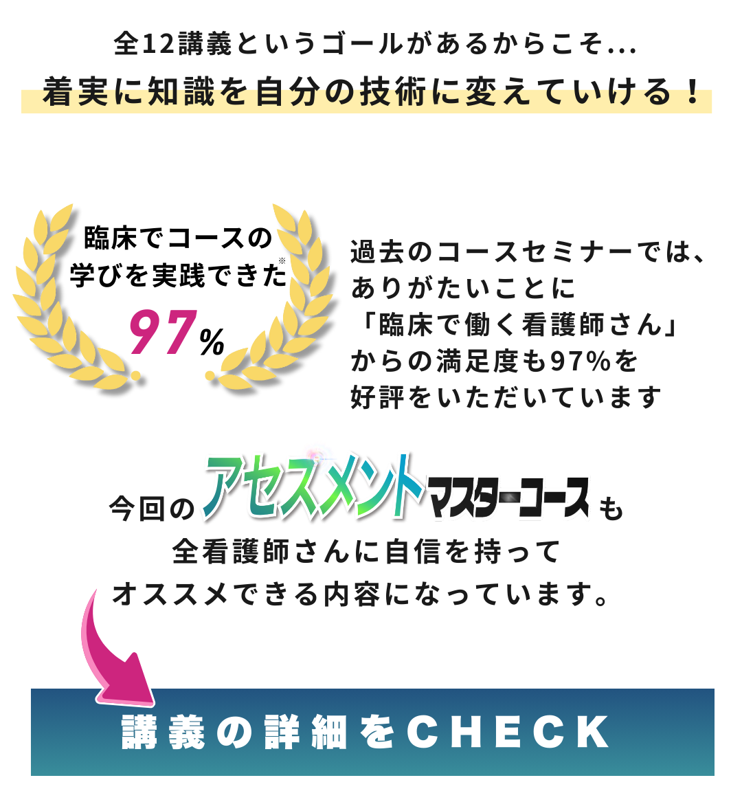 また、今までのコースセミナーでも、看護師以外に学生や他職種の医療職者など多数参加いただいておりますので、お気軽にご参加ください。