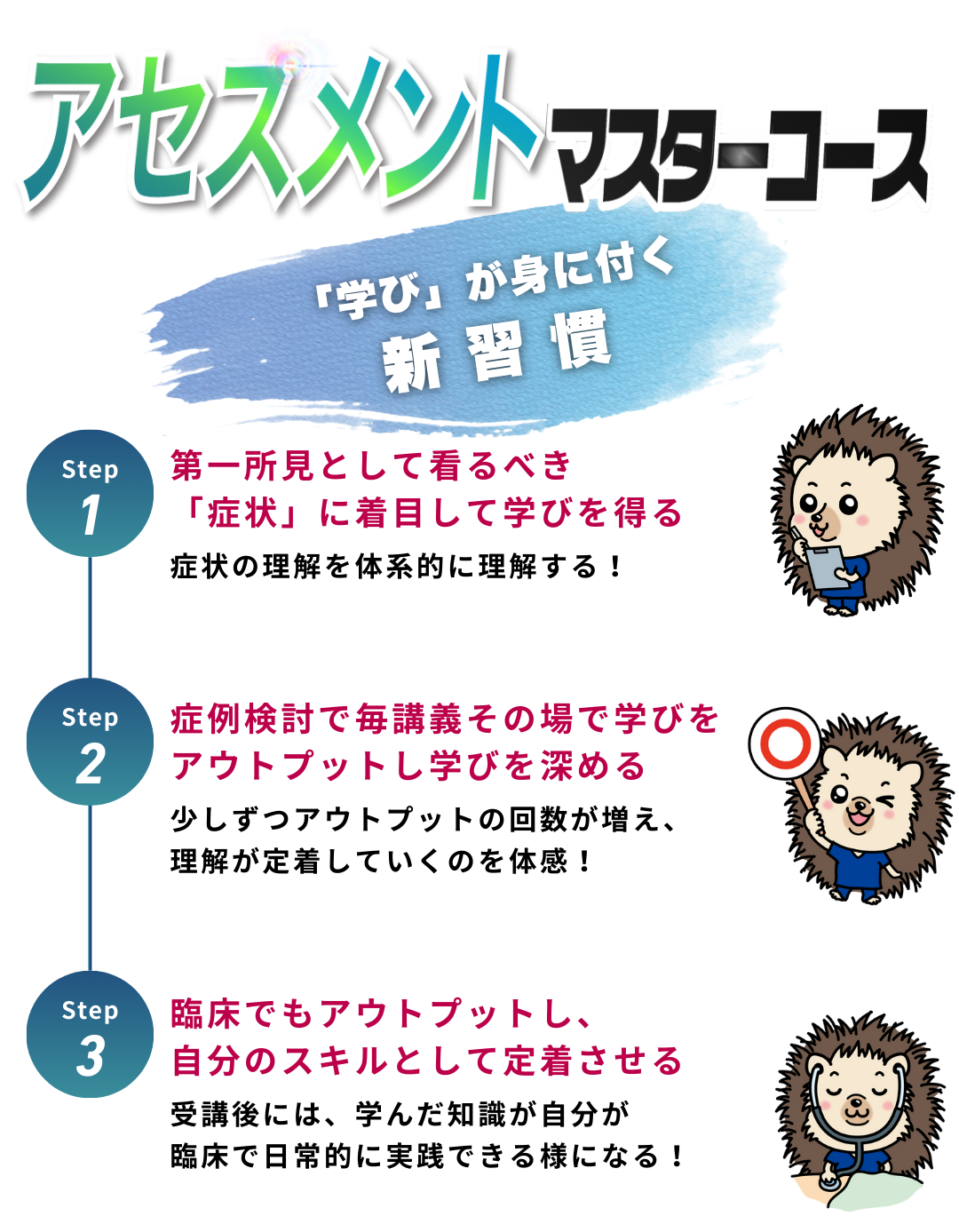 Medical Challenge アセスメントマスターコース/スペシャリストコース(以下、「当サービス」という。)は,ユーザーの個人情報について以下のとおりプライバシーポリシー(以下、「本ポリシー」という。)を定めます。本ポリシーは、当社がどのような個人情報を取得し、どのように利用・共有するか、ユーザーがどのようにご自身の個人情報を管理できるかをご説明するものです。