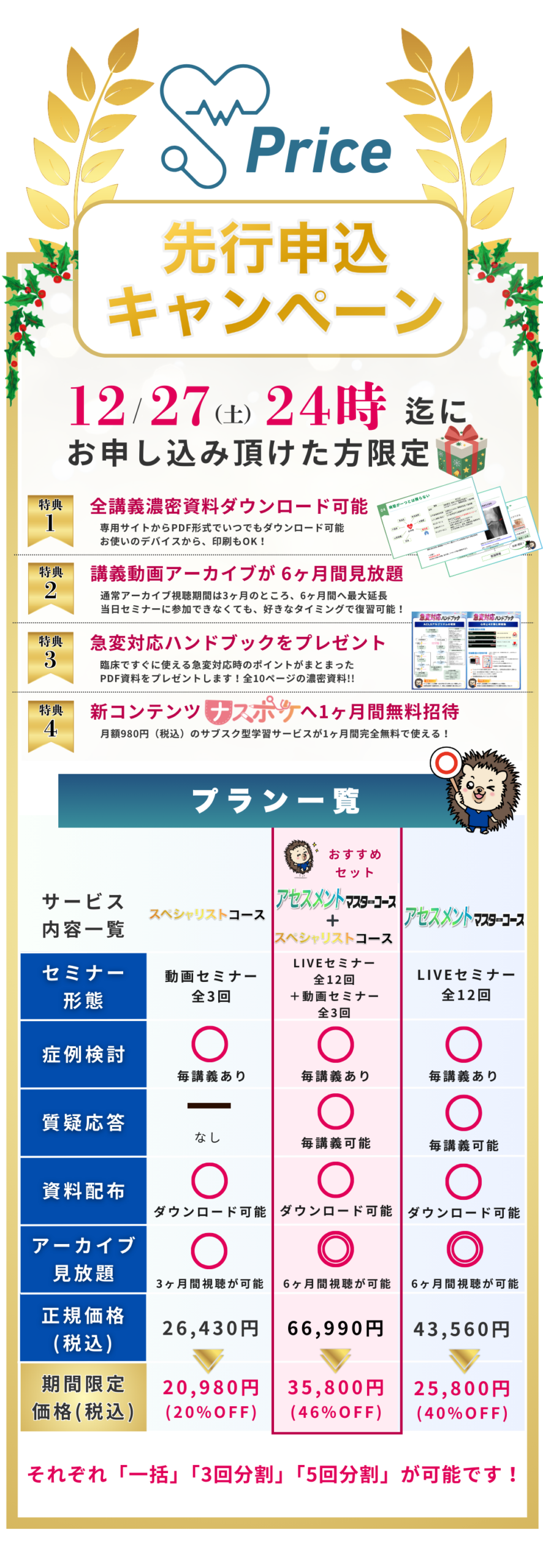 五回分割払い3,700円/月(消費税込)。